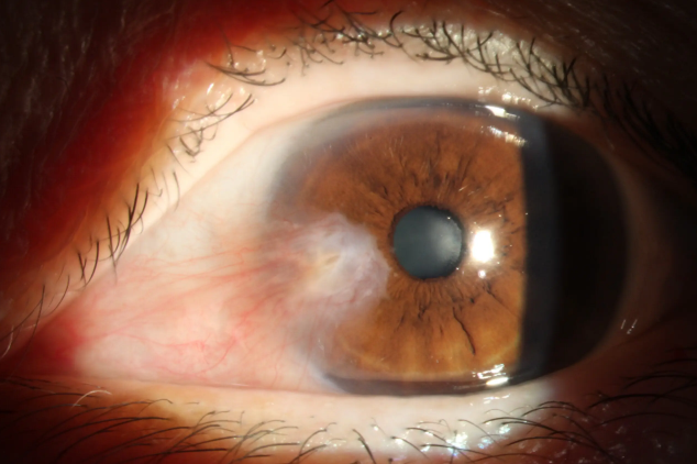 查看详情>>翼状胬肉一种常见的结膜变性疾病,是指睑裂部球结膜及结膜下组织发生变性、肥厚、增生,向角膜内发展,呈三角形翼状,由此得名。翼状胬肉的发病人群一般以户外劳动者居多,发病原因与风尘、日光、烟雾等长期的慢